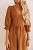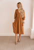 Camel Tie-Waist V-Neck Midi Dress