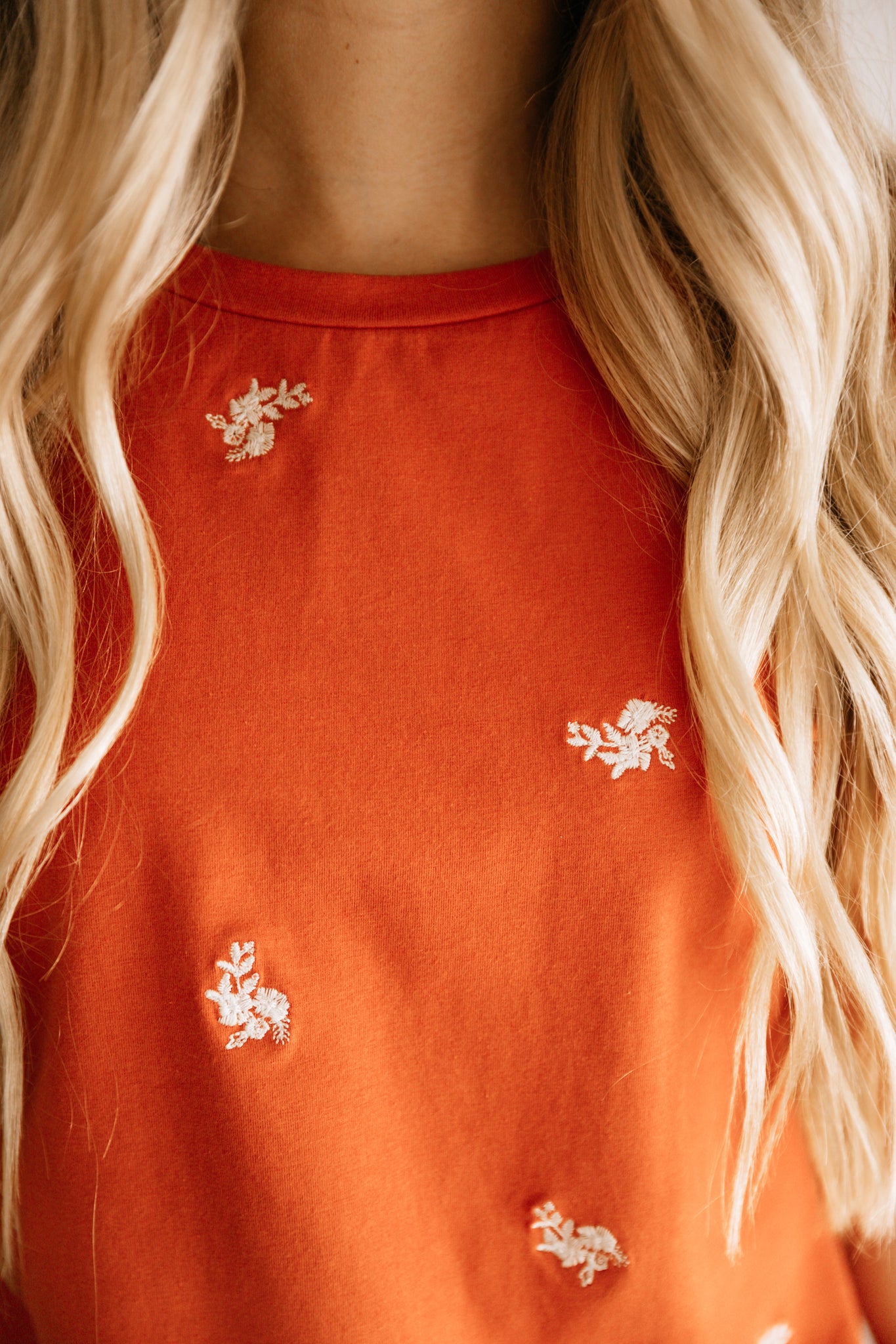 This Floral Embroidered Tee features embroidered floral, a crew neck line and the perfect thickness of fabric to go without an undershirt. Not to mention how perfect it layers with cardigans!