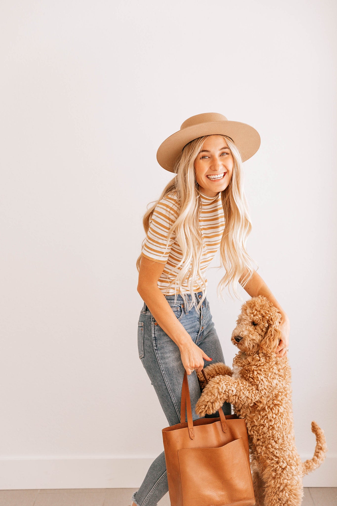 Classic stripes with a high neck and mid length sleeves to flatter.